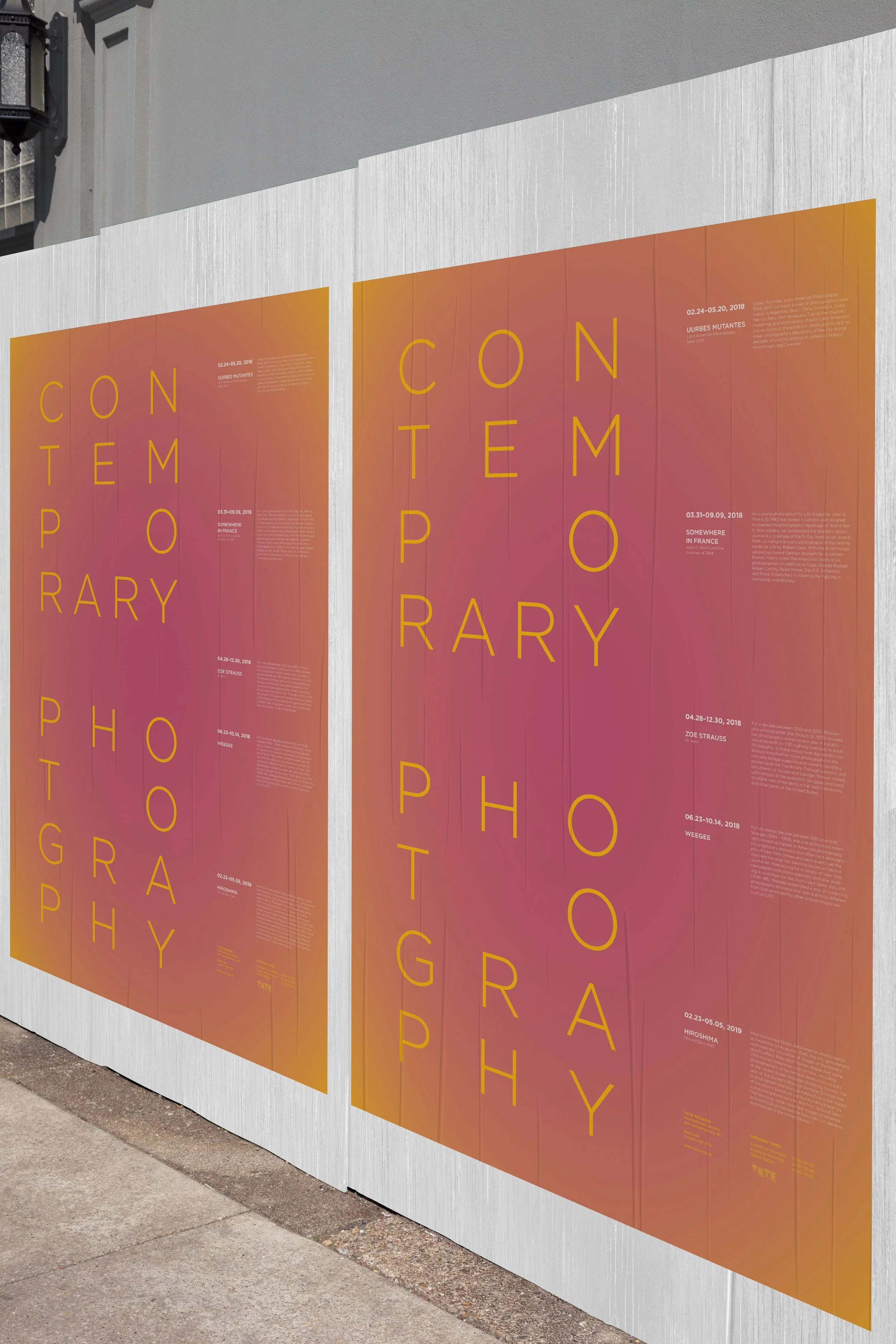 This is a poster of a series of Photography Exhibitions at the Tate Modern in London. Radial gradient background, and title/ content layout conveys the ideas within photography.